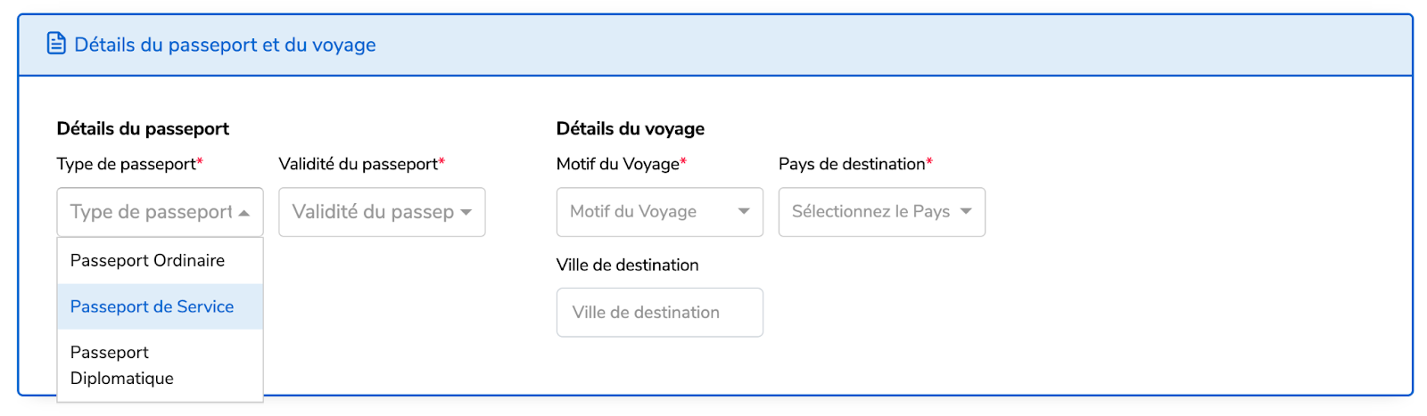 Remplissez les Détails du passeport et du voyage.