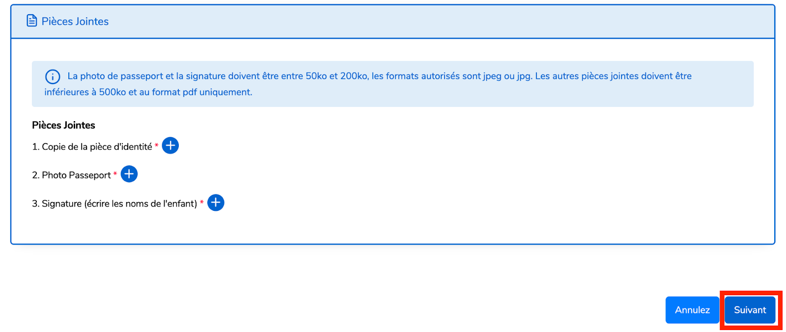 Joignez tous les documents requis dans le bon format et la bonne taille.