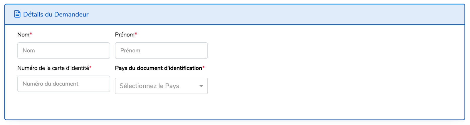 Le demandeur doit disposer d’un numéro de document d’identification.