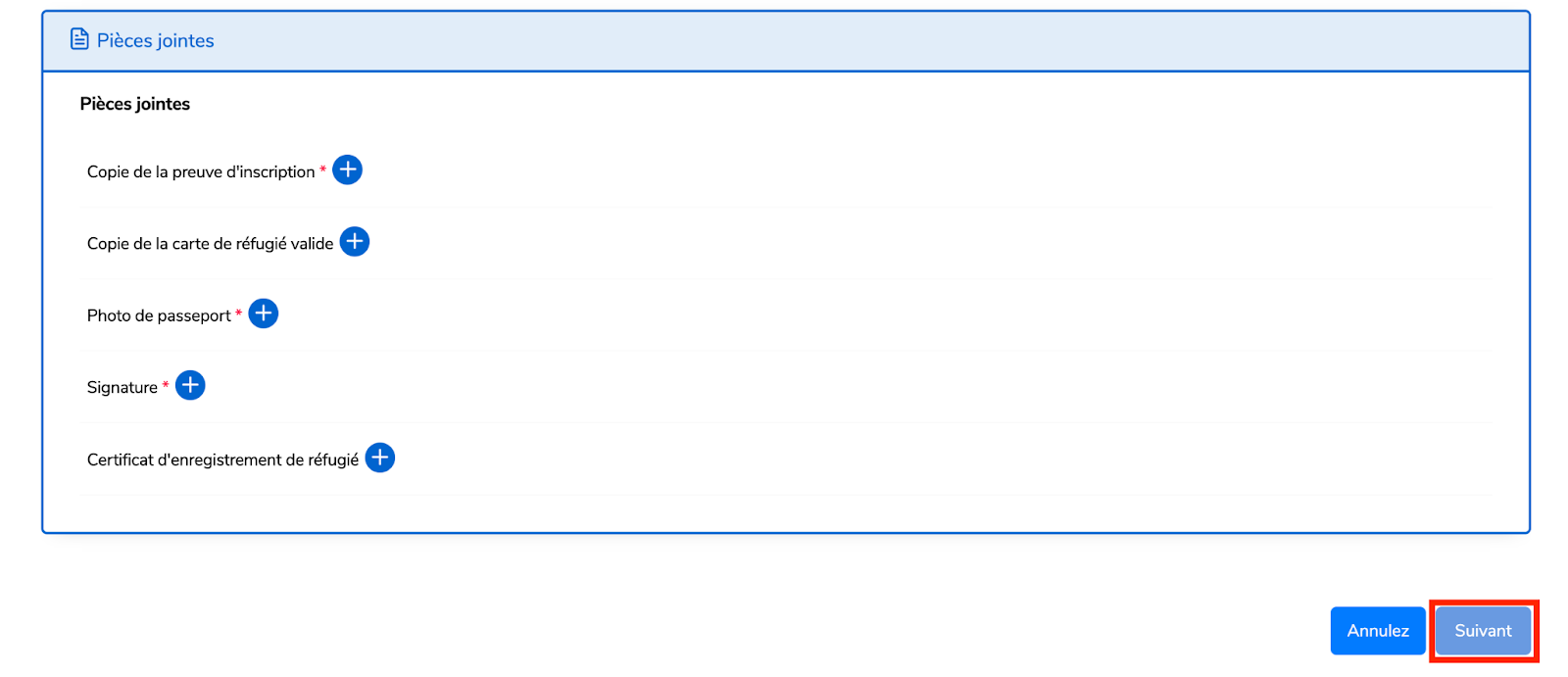 1. Téléchargez les pièces jointes requises dans le format correct, puis cliquez sur Suivant .