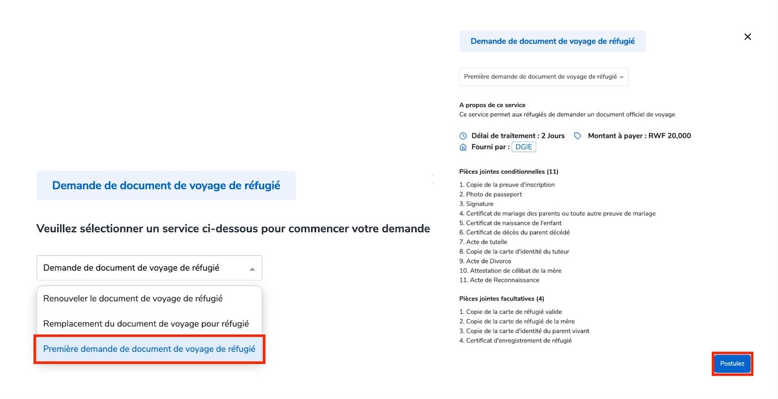 1. Sélectionnez “ Première demande de document de voyage de réfugié “.