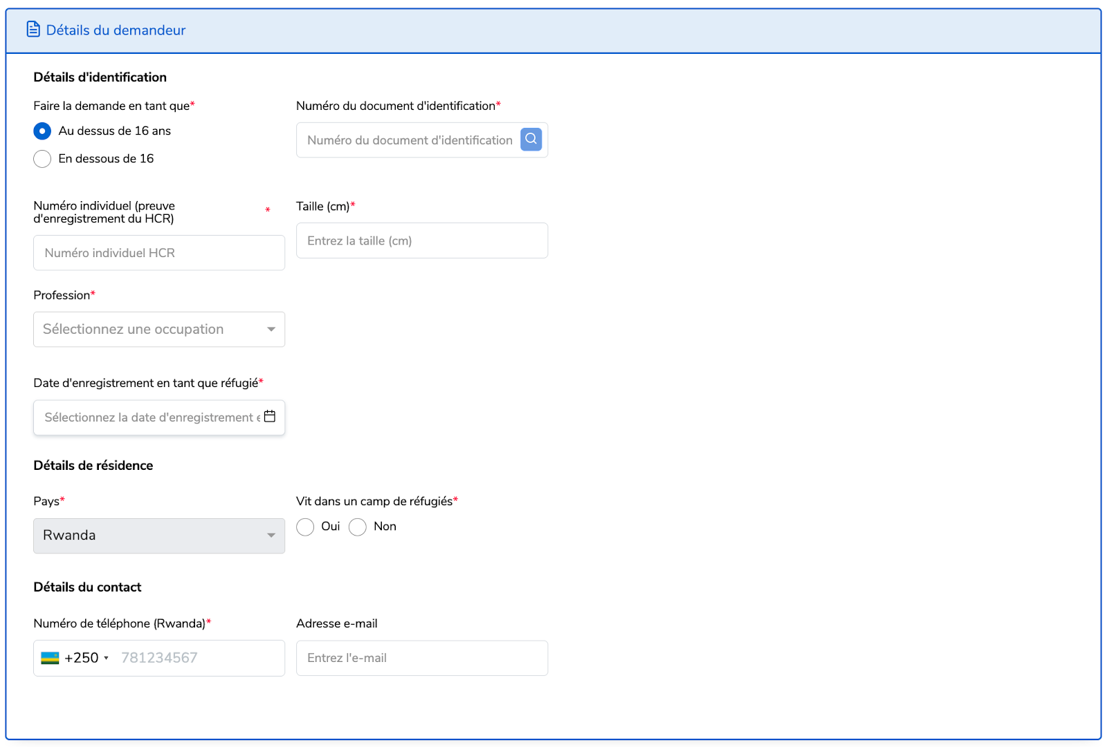 • Les demandeurs doivent disposer d’un numéro individuel (preuve d'enregistrement du HCR).
