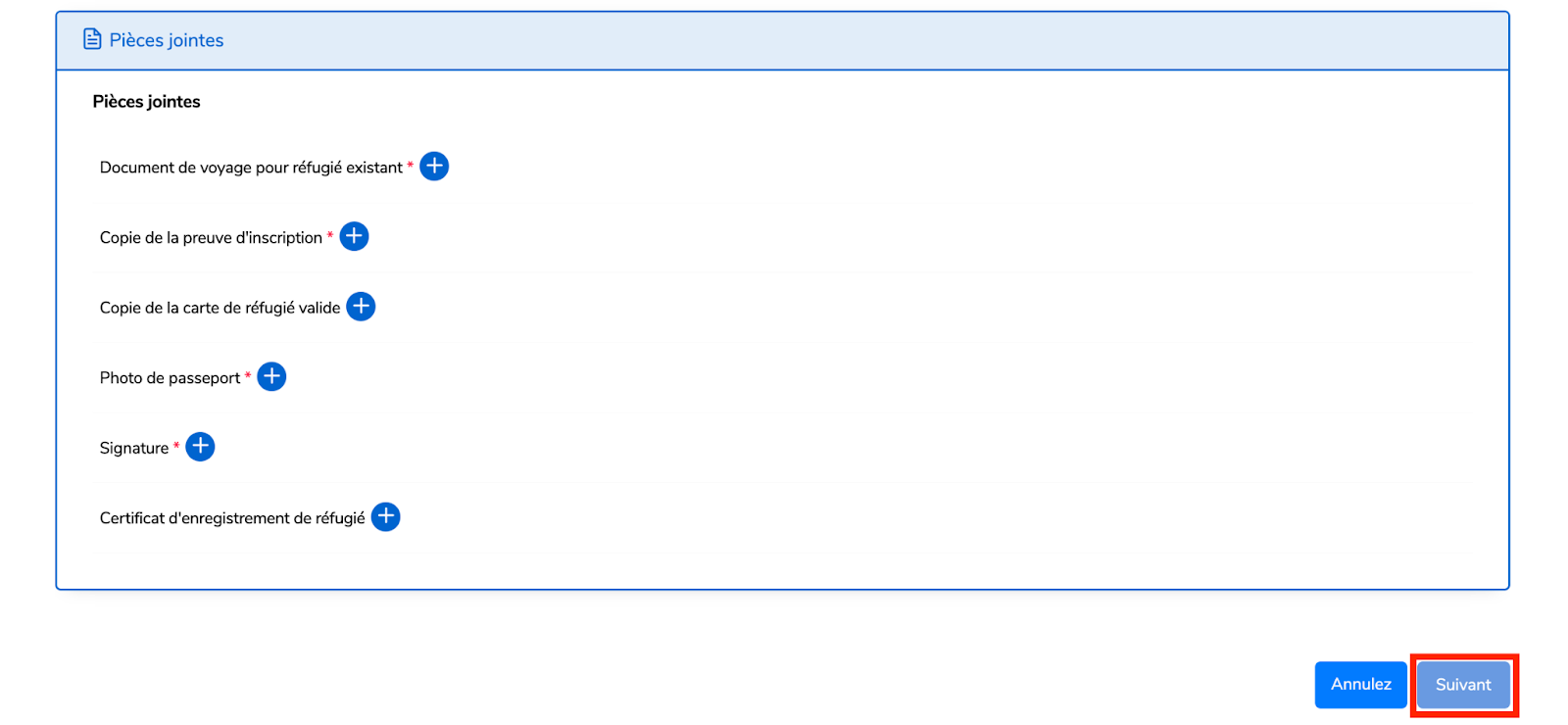 Téléchargez les pièces jointes requises dans le format correct, puis cliquez sur Suivant .