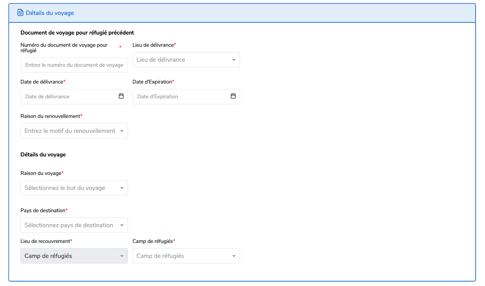 Saisissez les informations relatives au voyage, notamment le pays de destination, l’objet du voyage et les raisons du déplacement.