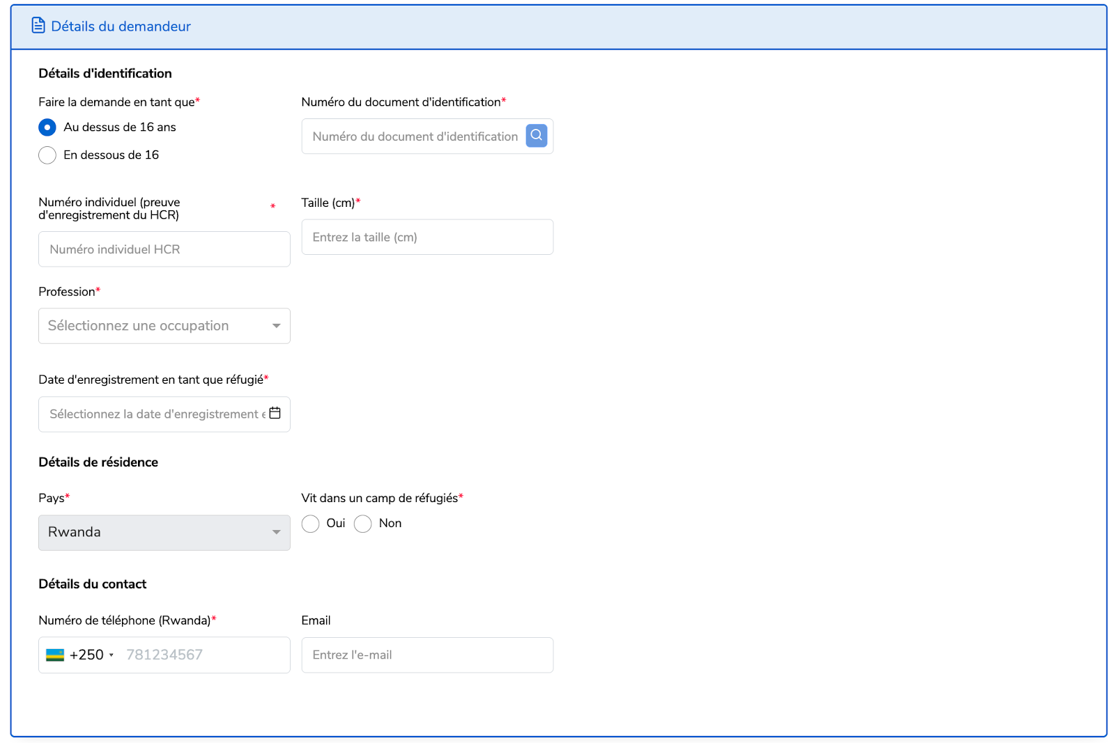 Les demandeurs adultes doivent également avoir un Numéro de carte d’identité de réfugié.