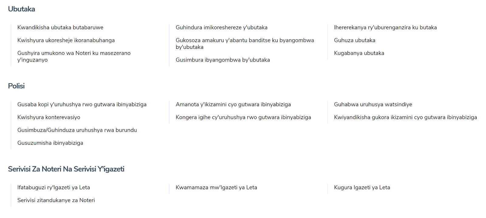 Iyi serivisi yemerera abantu cyangwa sosiyete gusaba gahunda yo gusuzumisha ibinyabiziga no kwishyurira iyo serivisi. Serivisi itangwa na Polisi y’Igihugu (RNP).